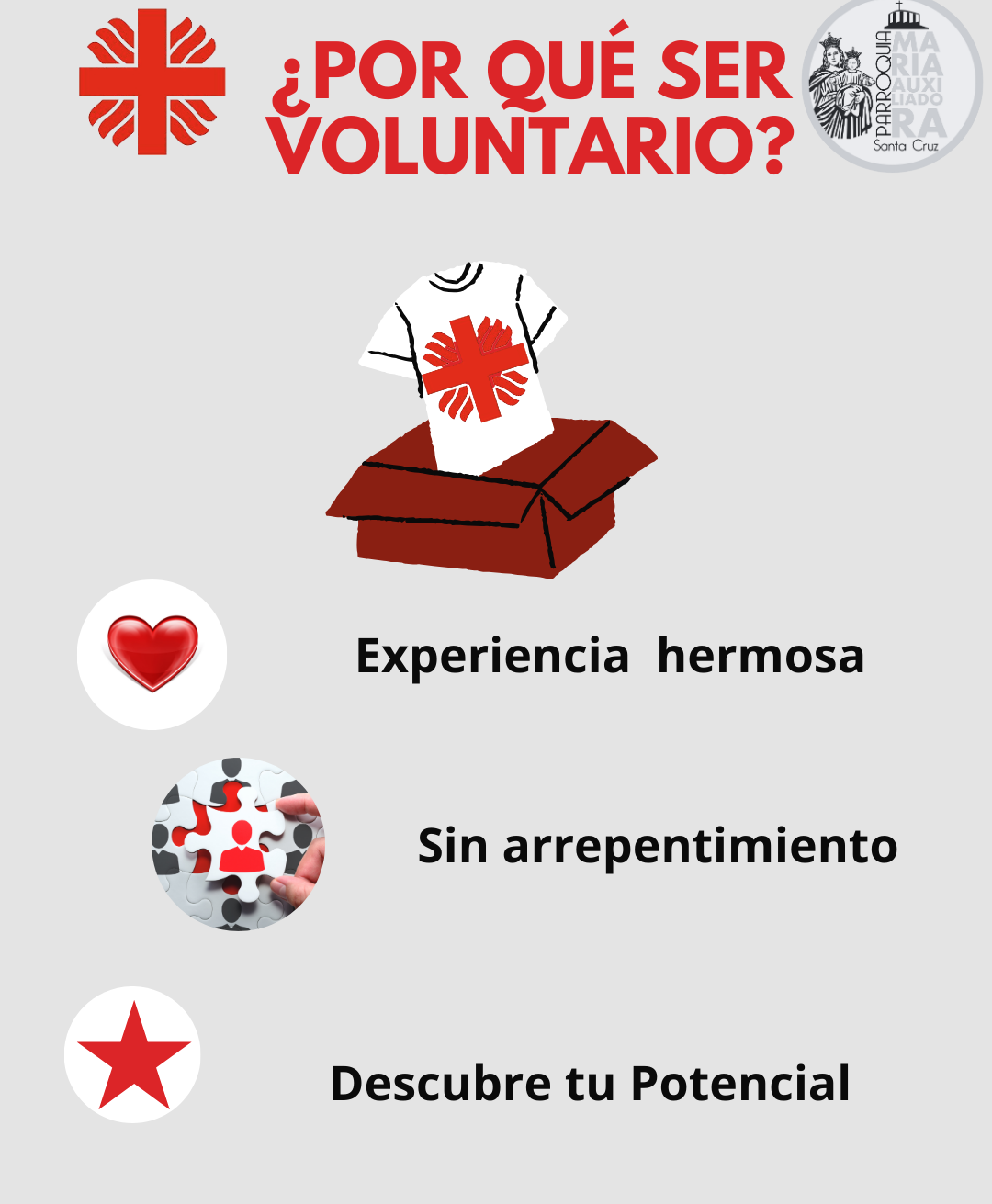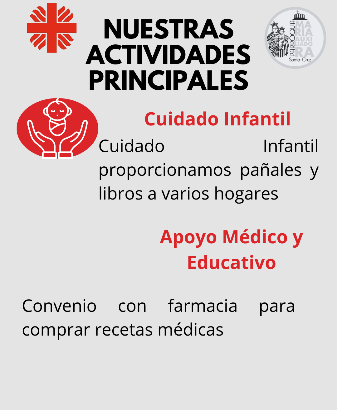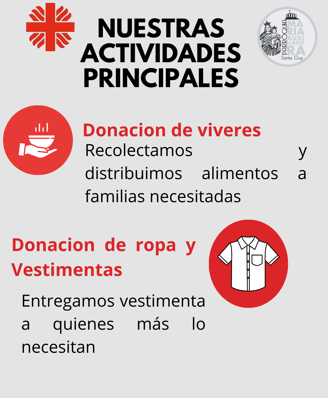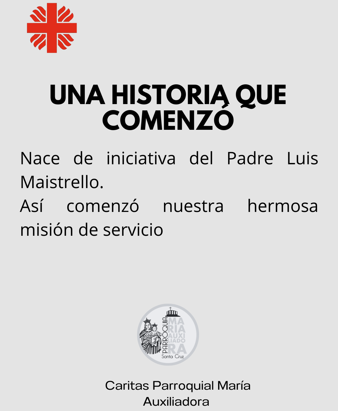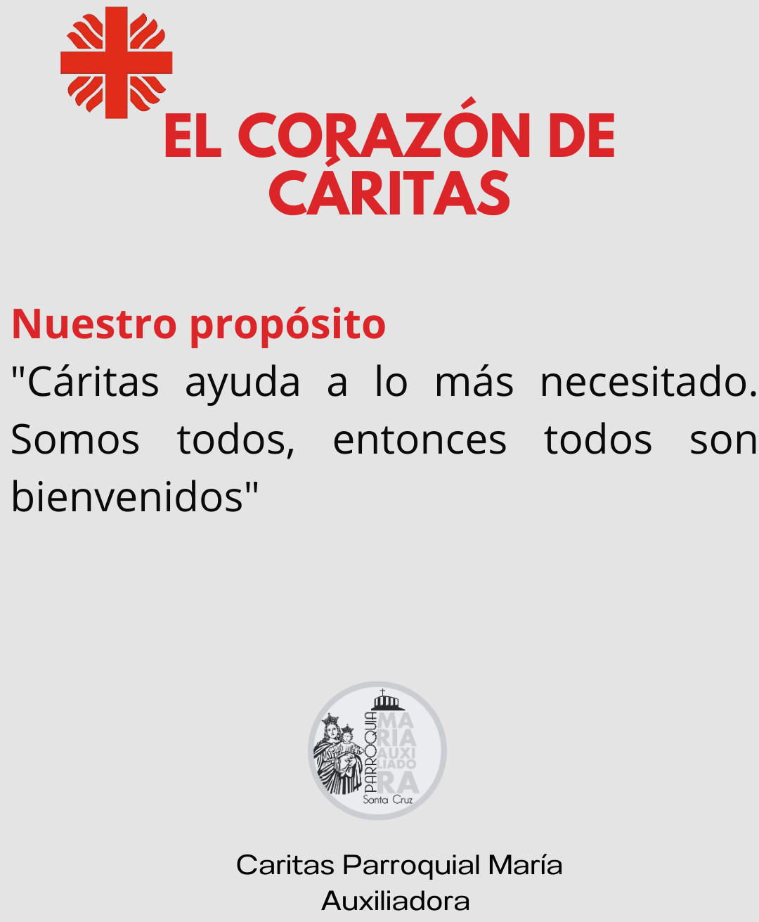 Cáritas Parroquial Cáritas Parroquial, establecida en 2021, es una iniciativa de acción social que se enfoca en apoyar a los más necesitados.