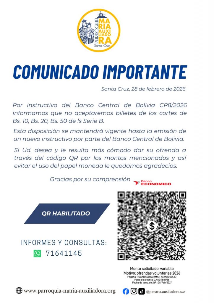 Debido a los recientes acontecimientos ocurridos en el país y siguiendo las disposiciones emitidas por el Banco Central de Bolivia, informamos a toda nuestra comunidad que no se estarán recibiendo billetes de la Serie B en cortes de Bs. 10, Bs. 20 y Bs. 50.